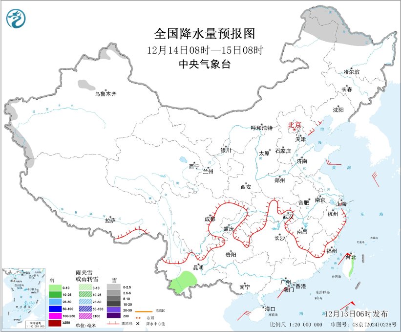 齐邦落暖预告图(12月13日08时-14日08时) 根源:中心气呼呼象台网站