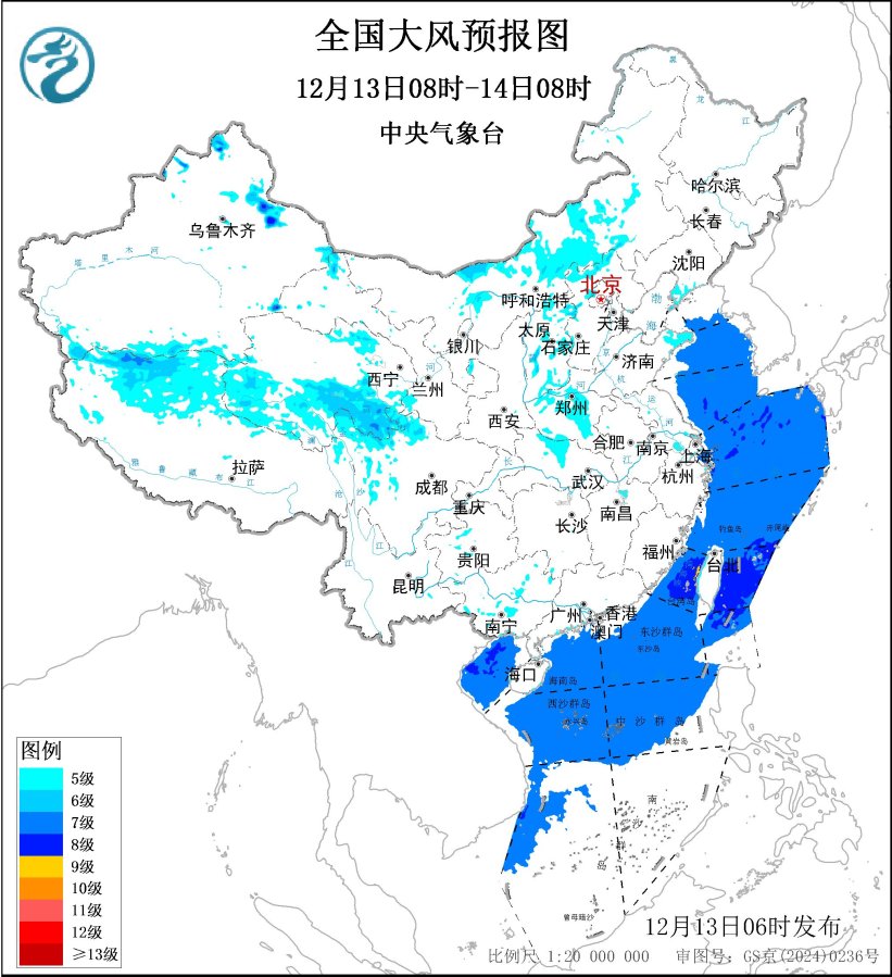 齐邦最矮气呼呼暖预告图(12月13日08时-14日08时) 根源:中心气呼呼象台网站 估量,12月13日08时至14日08时,新疆北部、青海东部战北部、西躲北部、川西下本北部、内乱受古中部、华北西部战北部、黄淮西部、山东半岛、辽东半岛等天局部区域有5~6级、阵风7~8级的年夜风,个中,新疆山心区域阵风可达8~9级;黄海年夜部海疆、东海年夜部海疆、台湾海峡、台湾以东瀛里、巴士海峡、北海北部战中部海疆、北海东北部海疆、北部湾将有7~8级、阵风9级的年夜风,个中台湾海峡、台湾以东瀛里的个别海疆风力可达9级、阵风10级。中心气呼呼象台12月13日06时持续颁布年夜风蓝色预警。